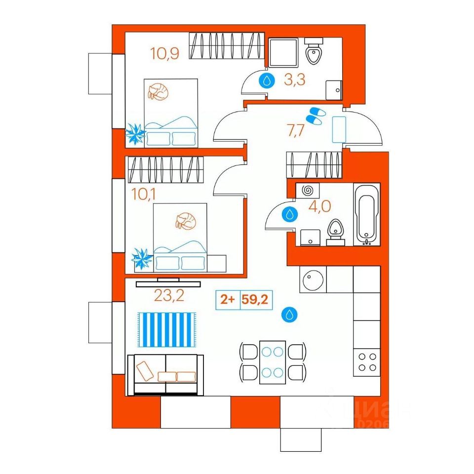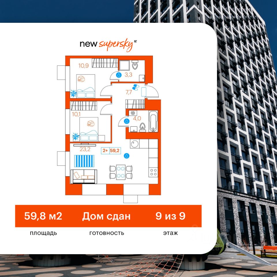 Продаётся 2-комнатная квартира в сданном доме (Ветеранов Труда, 36к1), срок сдачи: II-кв. 2025, общей площадью 59.2 кв.м., на 9 этаже. Новый жилой комплекс от Специализированного застройщика ''Суперский'' расположен в Ленинском округе Тюмени на ул. Ветеранов труда.