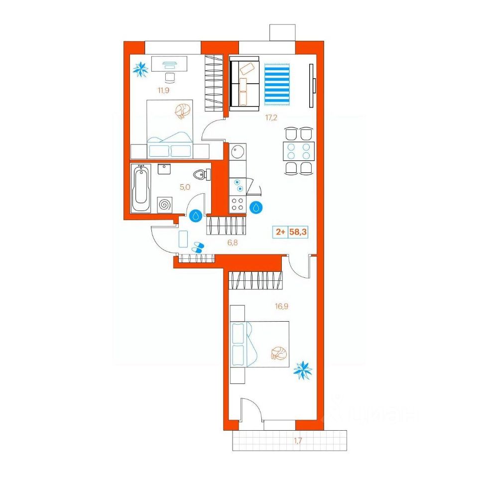 Продаётся 2-комнатная квартира в сданном доме (Ветеранов Труда, 36к1), срок сдачи: II-кв. 2025, общей площадью 58.6 кв.м., на 7 этаже. Новый жилой комплекс от Специализированного застройщика ''Суперский'' расположен в Ленинском округе Тюмени на ул. Ветеранов труда.