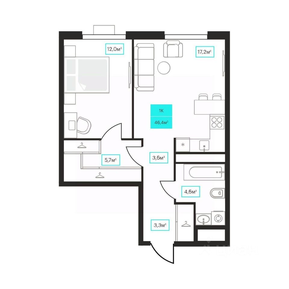 Продаётся 1-комнатная квартира в строящемся доме (Дом 6к1), срок сдачи: III-кв. 2026, общей площадью 46.4 кв.м., на 13 этаже. Новый жилой комплекс ''Futuro'' от застройщика ''newton'' расположен в г. Тюмень на Ставропольской улице.