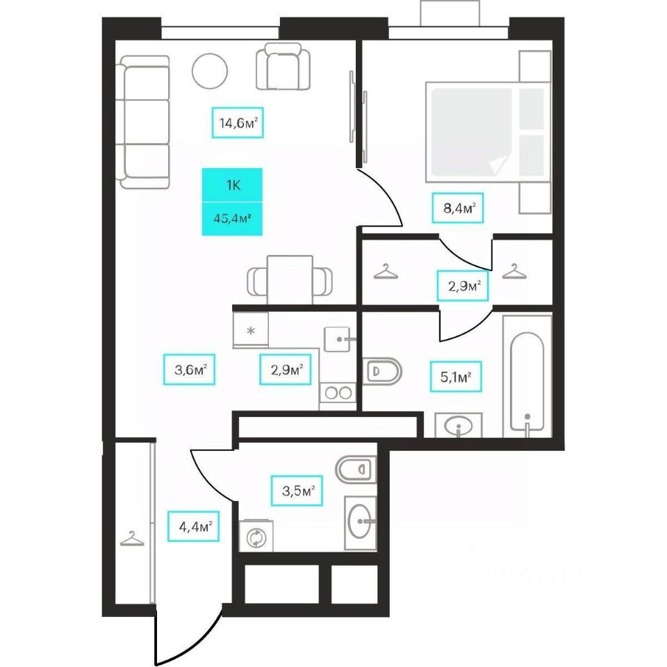 Продаётся 1-комнатная квартира в строящемся доме (Дом 6к1), срок сдачи: III-кв. 2026, общей площадью 45.4 кв.м., на 19 этаже. Новый жилой комплекс ''Futuro'' от застройщика ''newton'' расположен в г. Тюмень на Ставропольской улице.