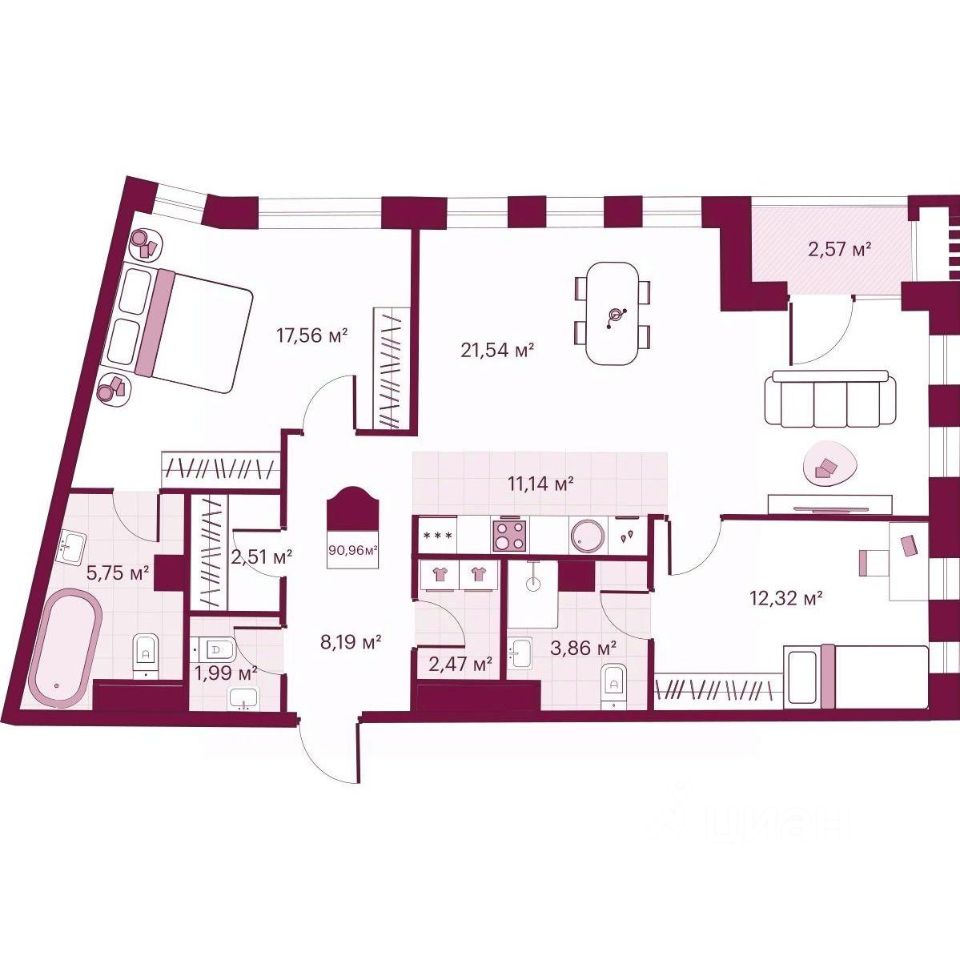 Продаётся 2-комнатная квартира в строящемся доме (Герцена, 33), срок сдачи: II-кв. 2026, общей площадью 89.9 кв.м., на 4 этаже. Новый жилой комплекс Secret Place от Специализированного застройщика ''Сикрет плэйс'' расположен по адресу: г. Тюмень, по ул. Герцена.