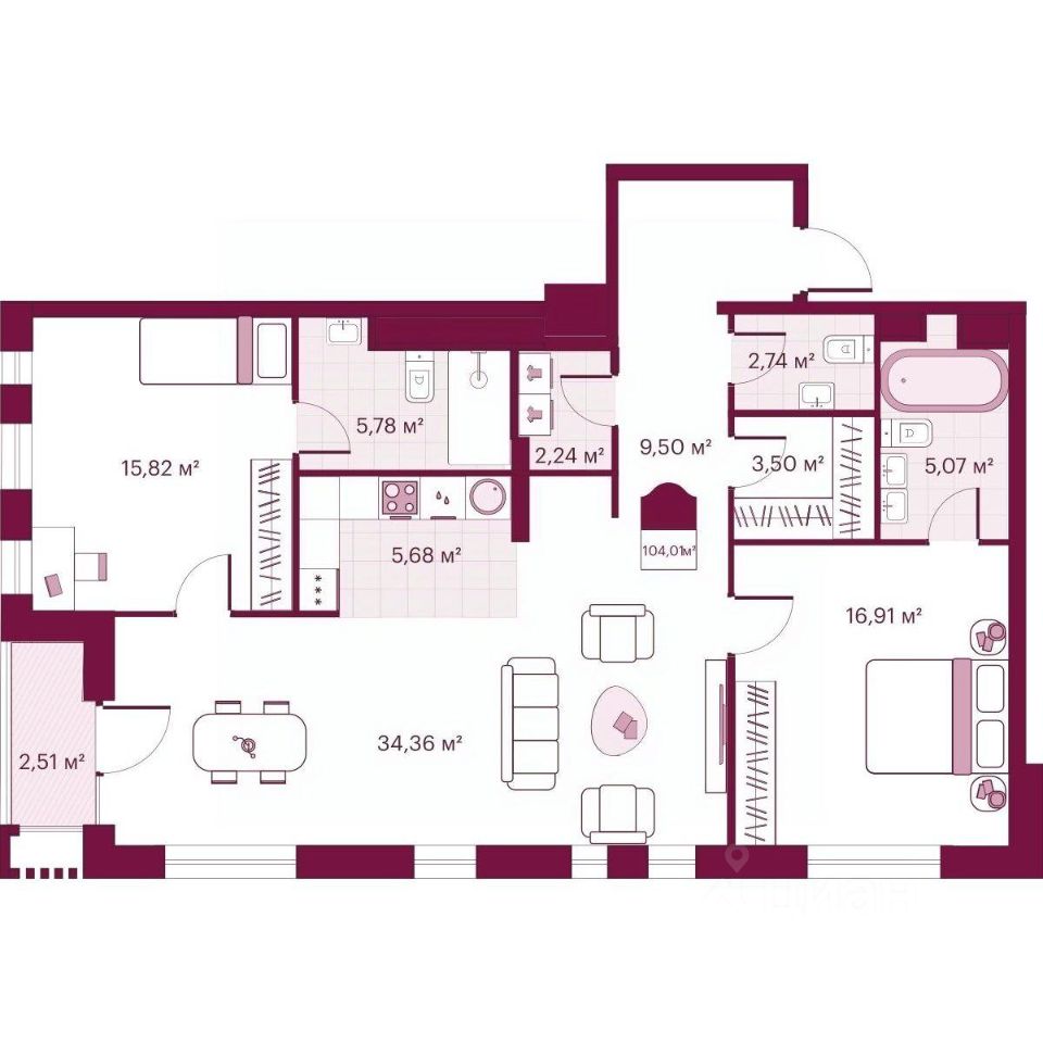 Продаётся 2-комнатная квартира в строящемся доме (Герцена, 33), срок сдачи: II-кв. 2026, общей площадью 104.11 кв.м., на 4 этаже. Новый жилой комплекс Secret Place от Специализированного застройщика ''Сикрет плэйс'' расположен по адресу: г. Тюмень, по ул. Герцена.