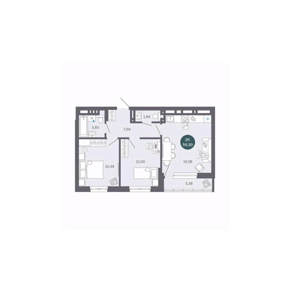 Общая площадь59,2 м2