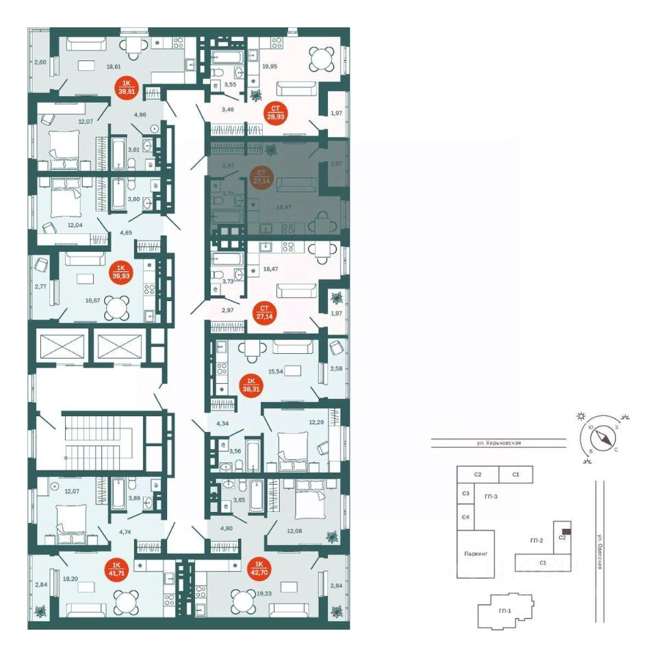 Общая площадь27,14 м2