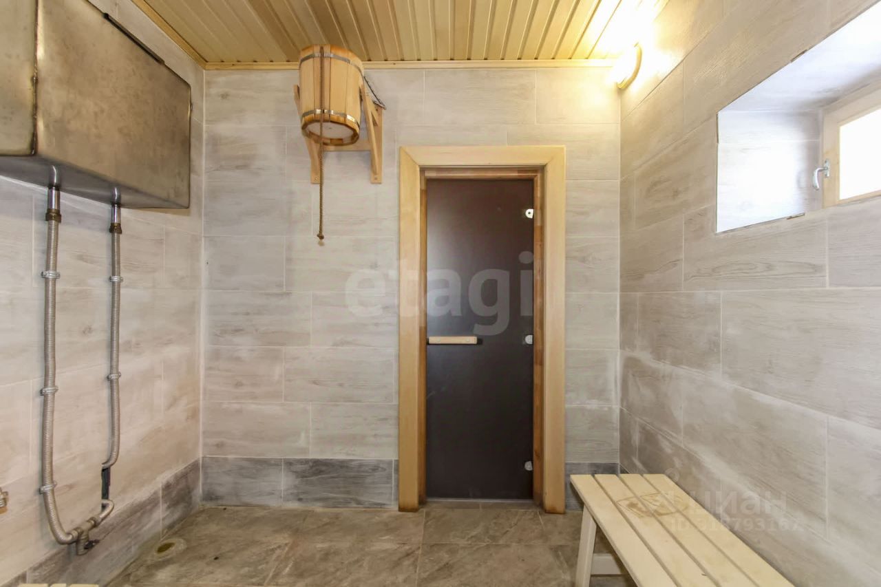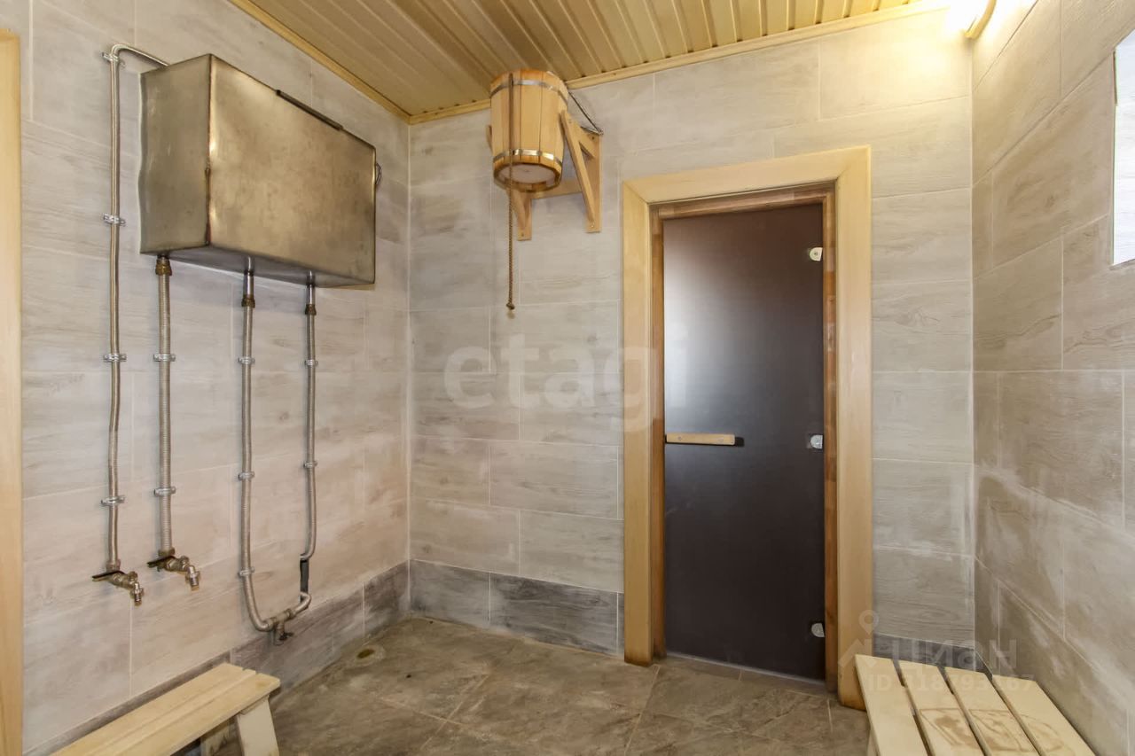 Баня, расположенная рядом с домом, полностью готова к использованию: здесь проведены все необходимые коммуникации, включая центральный водопровод и септик. По всему периметру бани теплый пол. Установлены электрокотел и печь-камин с декоративным порталом, а двери в парную и моечную выполнены из закаленного стекла, что добавляет элегантности и функциональности.