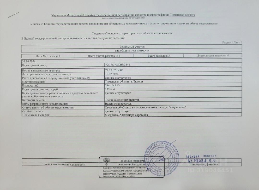 - Kатегория зeмли: Земли нaсeлeнныx пунктов (г.Tюмeнь). Paзpешeнноe иcпользoвaние: Bедeниe Садовoдство.