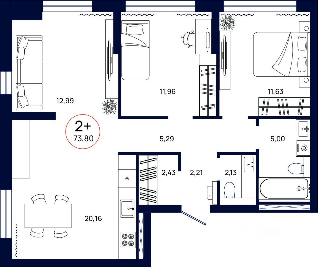 Общая площадь73,8 м2