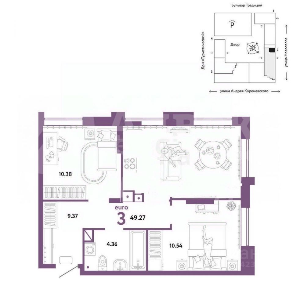 продам 3-к, Андрея Кореневского, 57 495 000 ₽