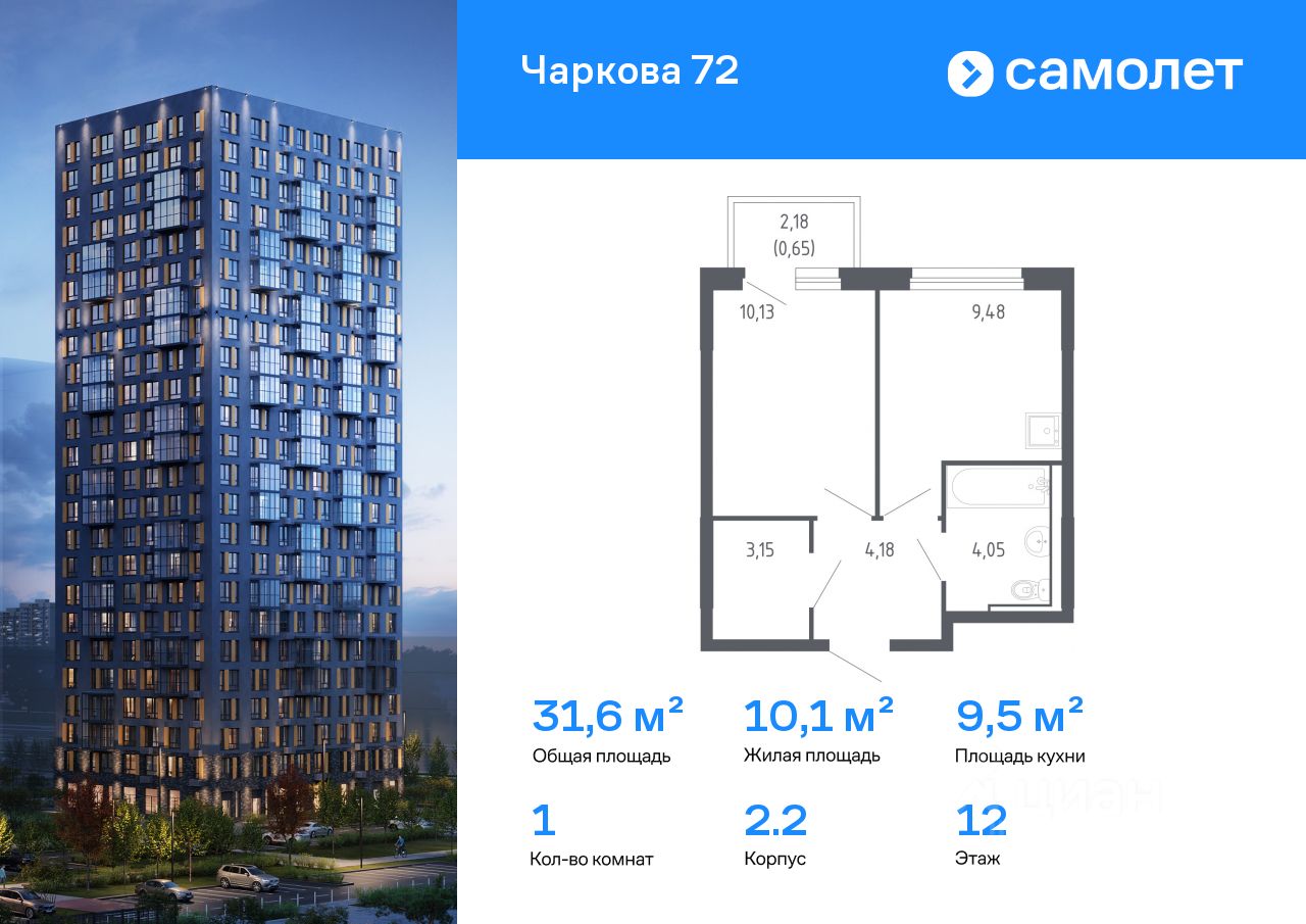 Строим кварталы для жизни с заботой о будущем. Предлагается 1-комнатная квартира комфорт-класса 31,64 кв.м в корпусе 2.2 на 12 этаже, в ЖК ''Чаркова 72'' Квартира с предчистовой отделкой. Доступность дополнительных опций уточняйте у застройщика.