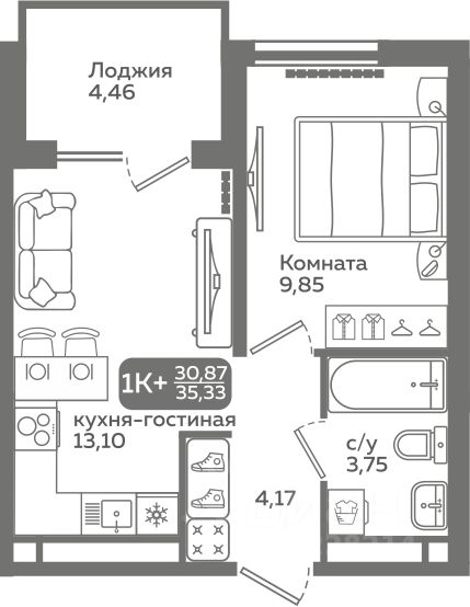 Прямая продажа от застройщика! Продается однокомнатная квартира в строящемся ЖК ''Меридиан Слобода'', срок сдачи: I-кв. 2027, общей площадью 30.87 м², на 7 этаже из 21. Площадь кухни — 13.1 м².