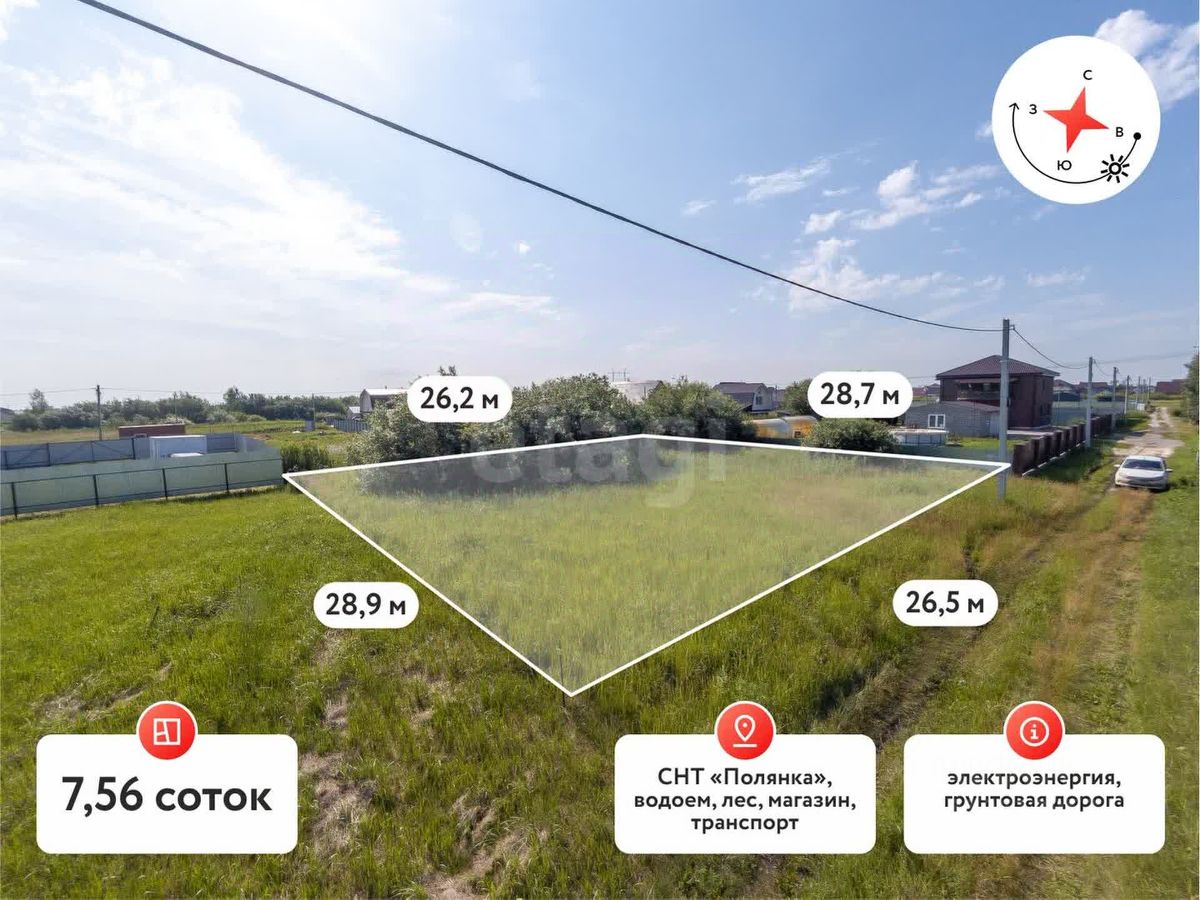 ОБЪЕКТ: Продаётся земельный участок, площадью 8 соток, который расположен вблизи от города Тюмени, по Салаирскому тракту,район Казарово, рядом пос.Березняки. Участок угловой.