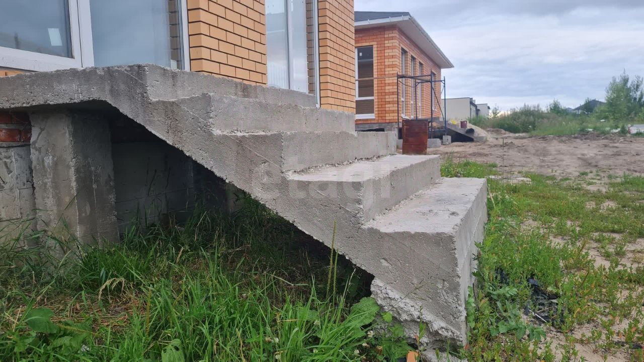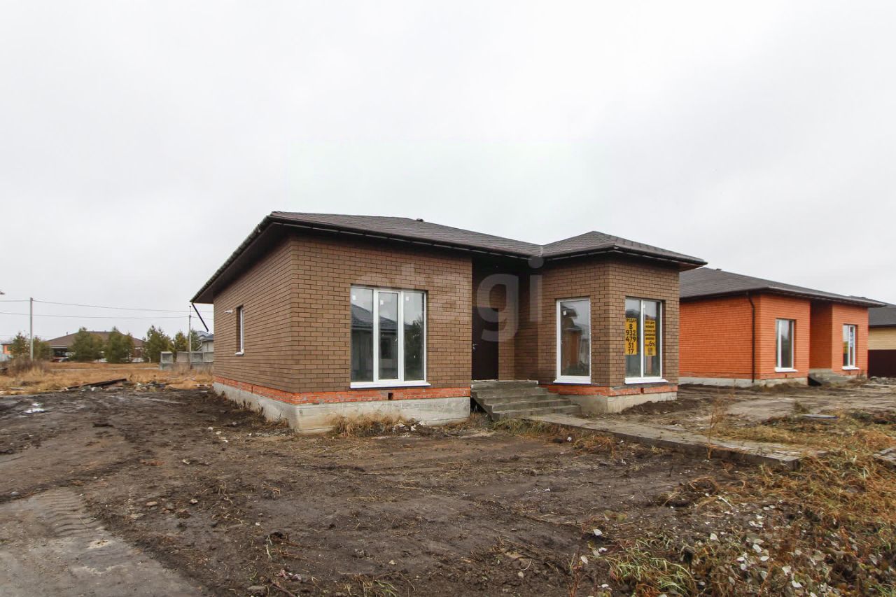 Планировка включает четыре комнаты: кухню-гостиную, три спальни, просторную террасу с панорамными окнами, гостевой санузел и котельную с двухконтурным газовым котлом. На всей площади первого этажа уложен теплый пол, в спальнях дополнительно установлены радиаторы. Дом подключен к центральному водопроводу, канализация автономная — септик на 7 куб. м. Участок полностью оформлен в собственность, отсыпан и выровнен, расположен на возвышенности, что исключает риск подтопления.