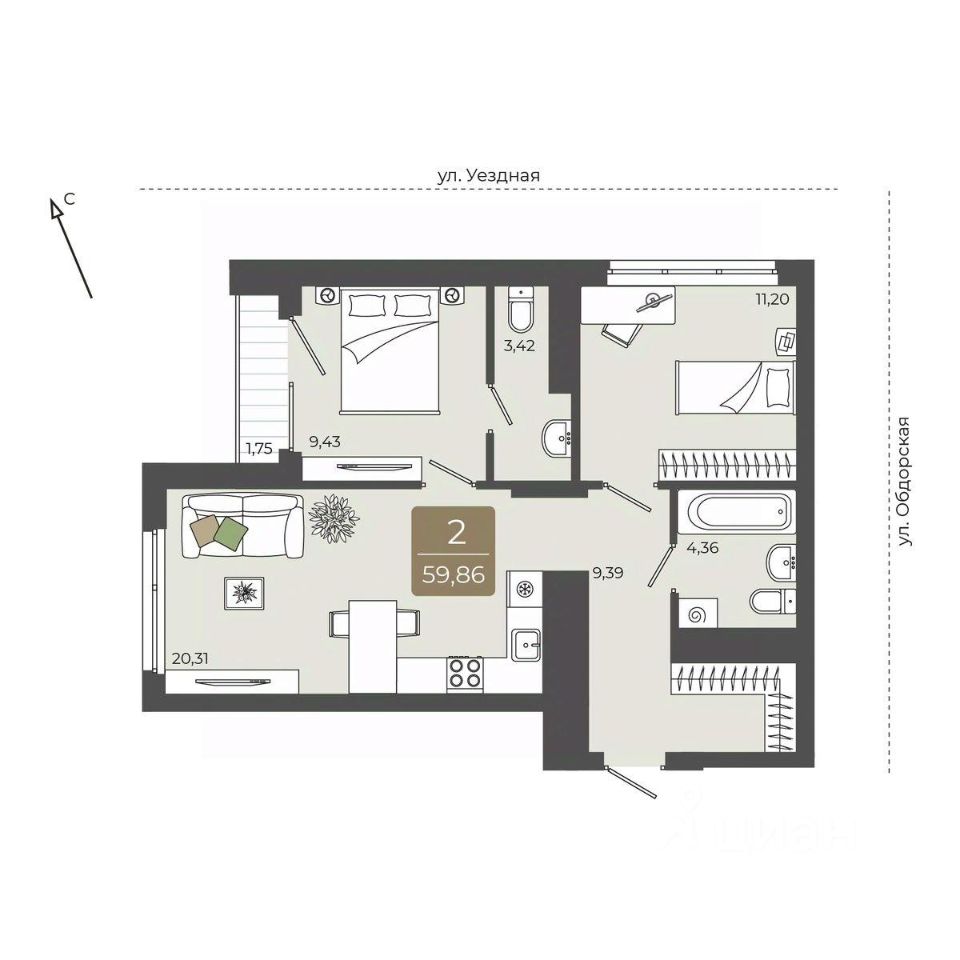 продам 2-к, Василия Подшибякина, 57 990 000 ₽