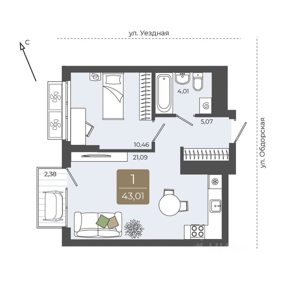 продам 1-к, Василия Подшибякина, 55 620 000 ₽
