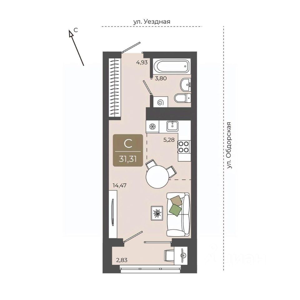 продам 1-к, Василия Подшибякина, 54 810 000 ₽