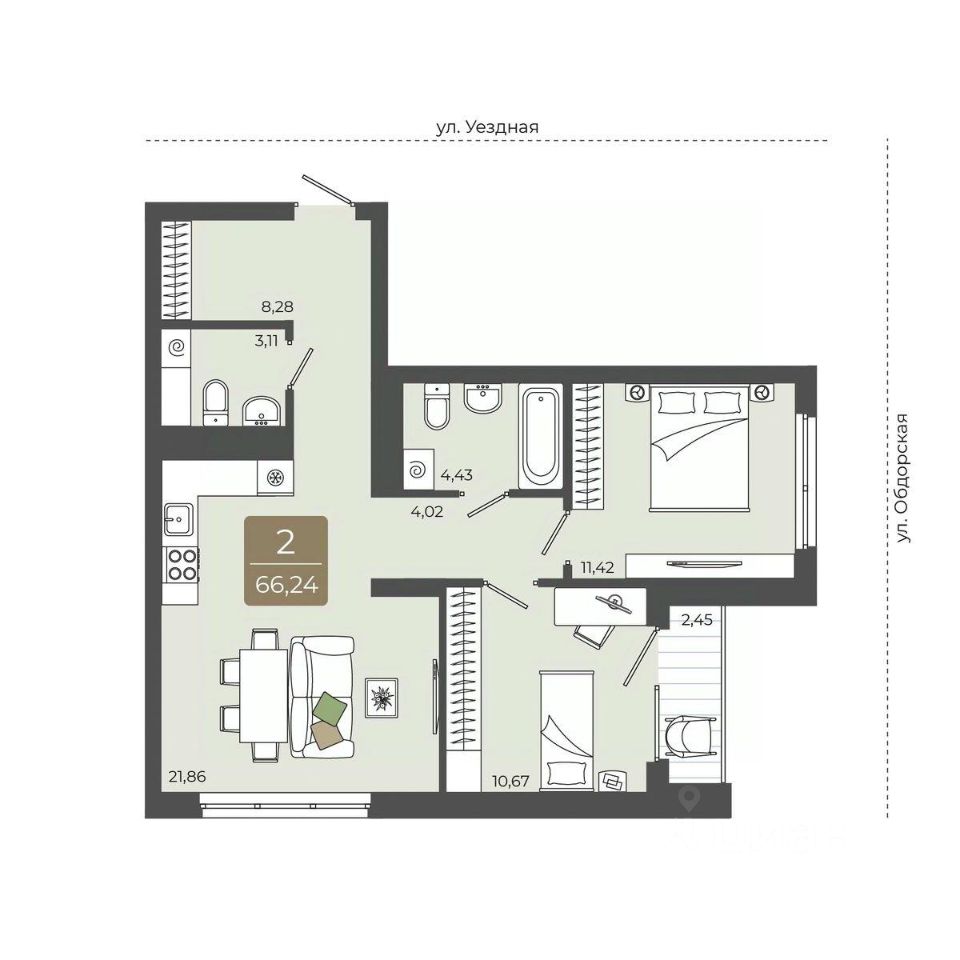 продам 2-к, Василия Подшибякина, 58 940 000 ₽