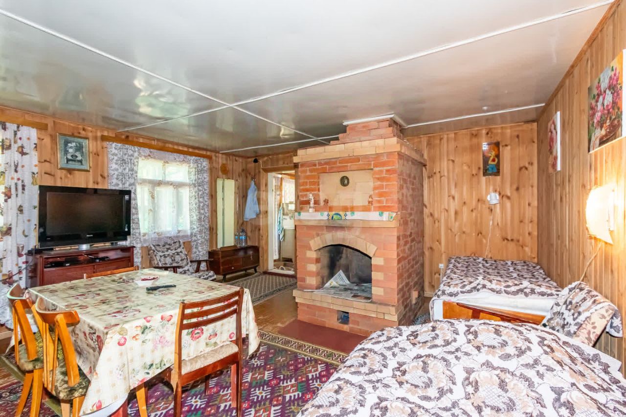 Дом 45 м², 2012 года постройки — бревно, утеплен, обшит снаружи металлосайдингом. Внутри — тепло, уютно, добротный камин, мебель, диван, кресла, стол, техника. Подходит для круглогодичного проживания.