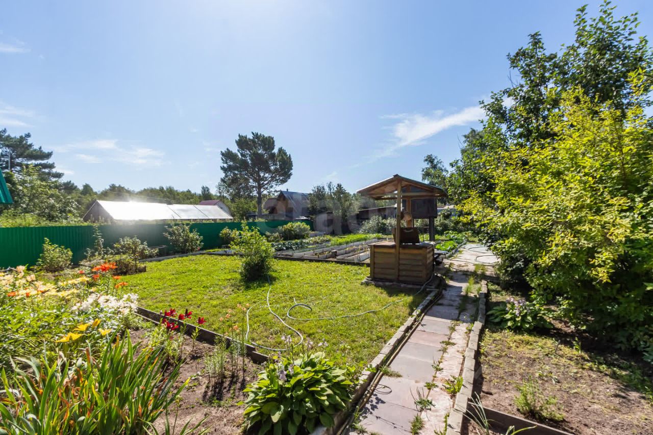 Участок 9,6 соток — ровный, отсыпанный, не затапливает. Земля плодородная, ухоженная. Грядки, клумбы, плодовые деревья и кустарники: смородина, малина, клубника, жимолость, яблоня, вишня, черноплодка и многое другое. Всё продумано и обустроено — остается только поддерживать.