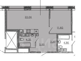 В квартире просторная кухня площадью 22,04 кв. м, где можно обустроить уютную зону для приготовления и приема пищи. Жилая площадь составляет 11,6 кв. м. Санузел совмещенный, что позволяет эффективно использовать пространство. Высота потолков — 2,7 метра. Квартира без ремонта, поэтому у вас есть возможность создать интерьер своей мечты.