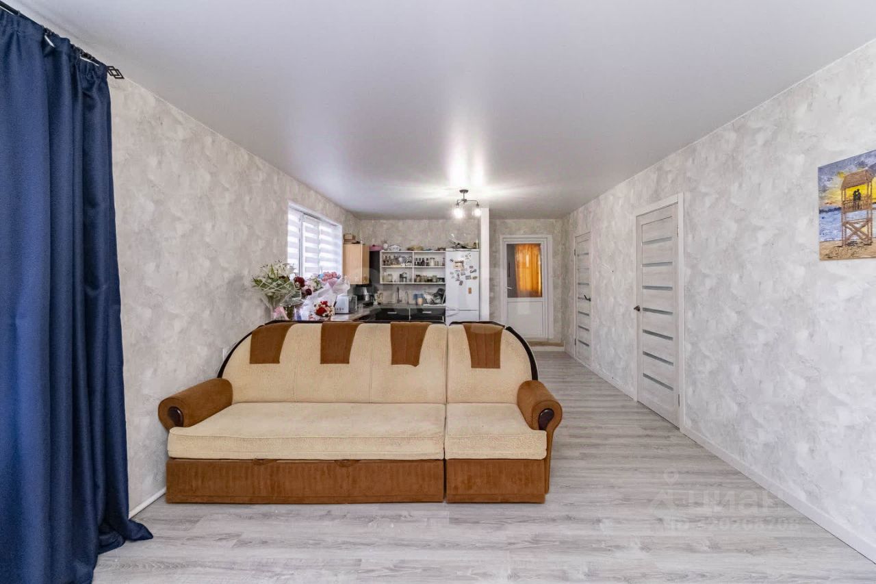 Просторный дом в с. Каскара. Дом из бруса (80кв. м.) формата 2+. ПЛАНИРОВКА. При входе в дом большой теплый тамбур в котором организована зона прихожей и зона хранения. Большая кухня-гостиная позволит собираться всей семье на вкусные завтраки и обеды. Практичное зонирование пространства: выделена зона приготовления и зона отдыха. 2 изолированные комнаты правильной формы. Санузел совмещенный, просторный. Установлена ванная и душ. РЕМОНТ. Дом с хорошим современным ремонтом. На полу ламинат, на стенах обои приятных оттенков. Потолок натяжной. Установлены стильные межкомнатные двери. Дом установлен на высоком фундаменте. Под домом большой подвал, который может быть использован как овощехранилище или зона хранения.