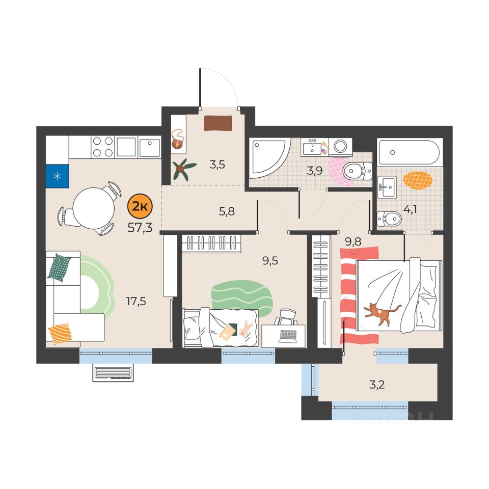 продам 2-к, Надежды Шалагиной, 49 969 000 ₽