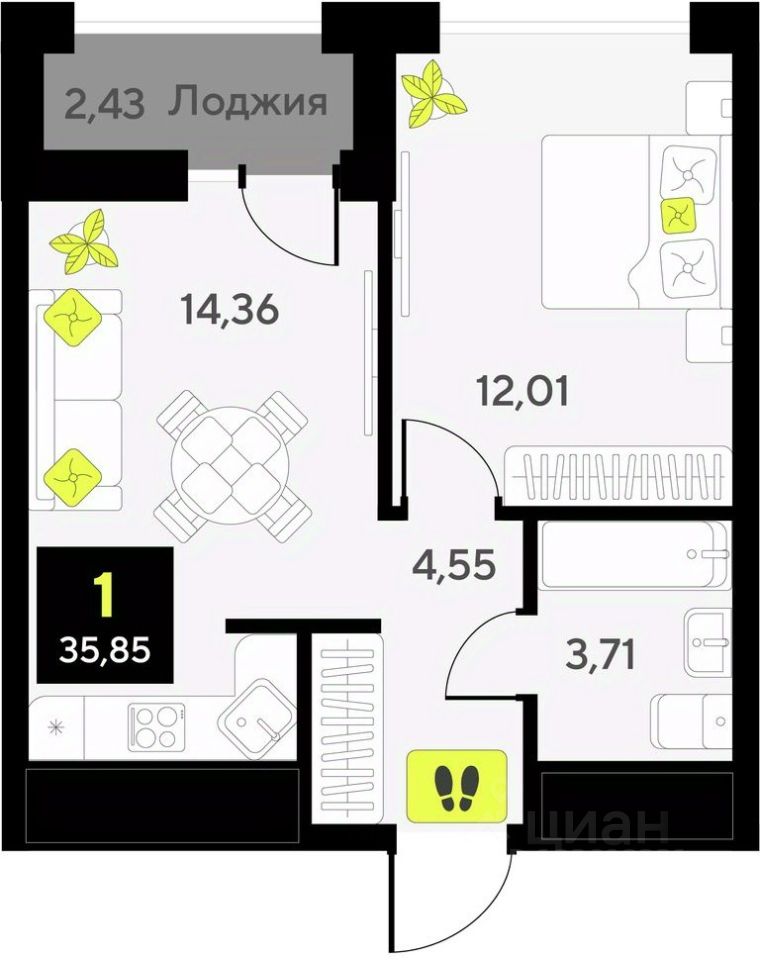 Общая площадь35,85 м2