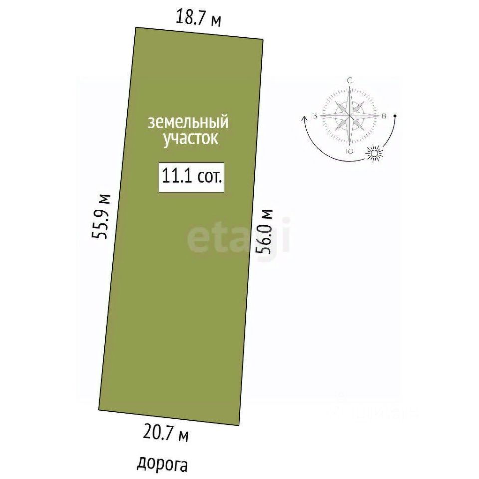 Площадь участка11,1 соток