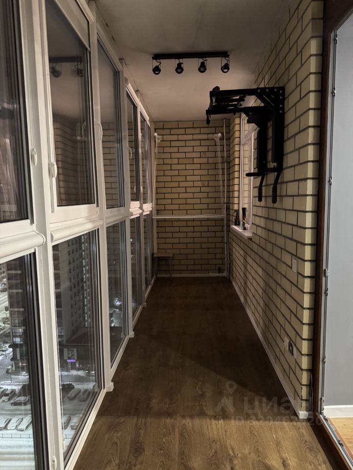 Застекленная панорамная лоджия с возможностью организации рабочего места/места отдыха.Так же на балконе есть турник.