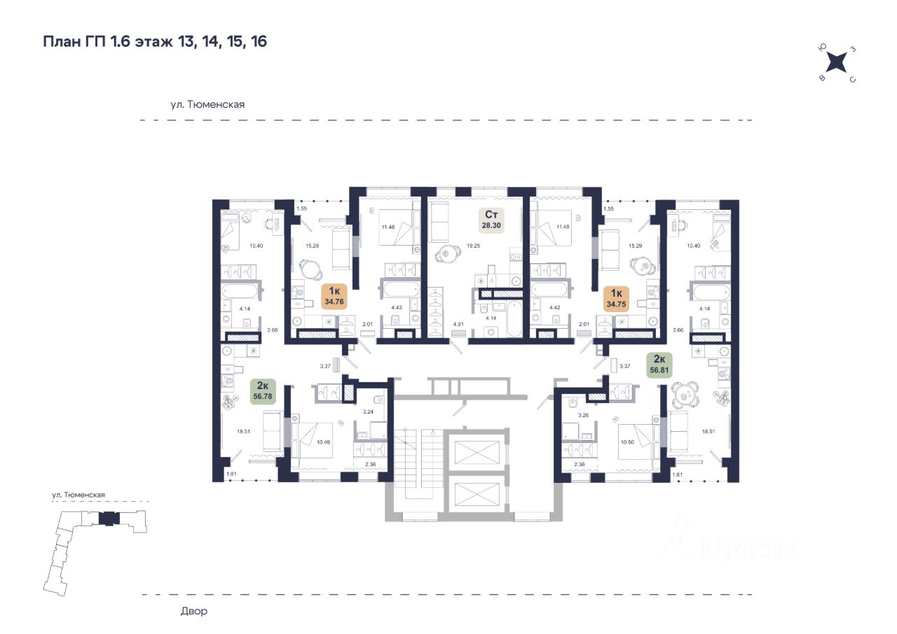 Общая площадь56,78 м2