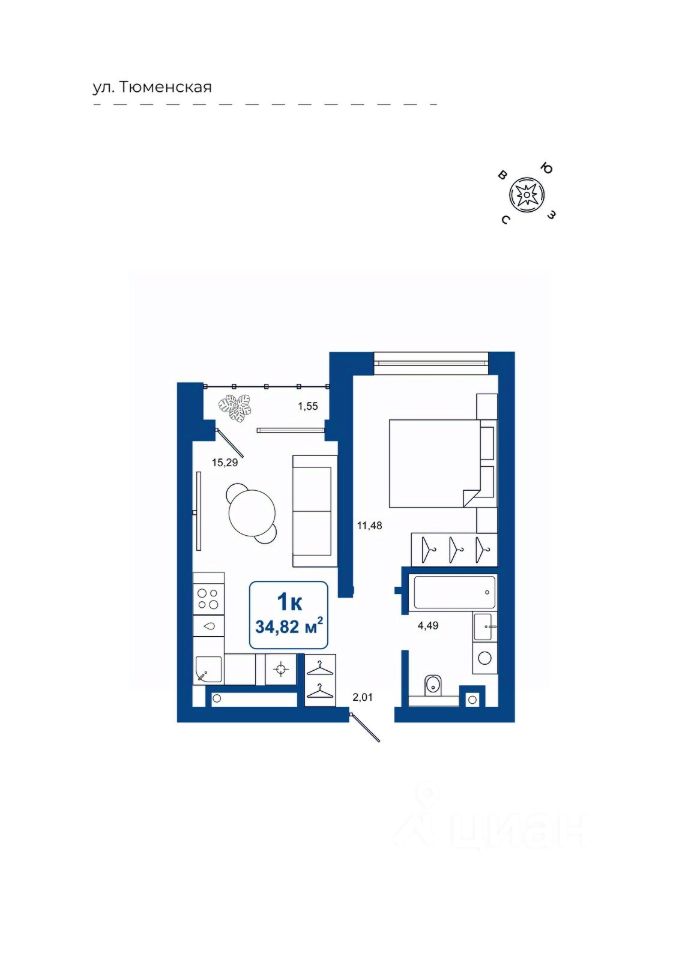 Общая площадь34,82 м2