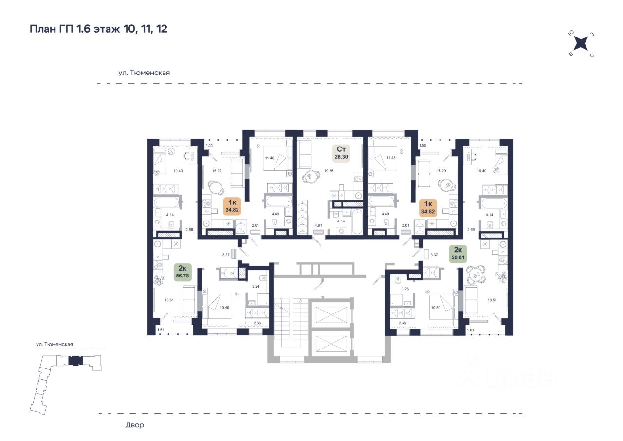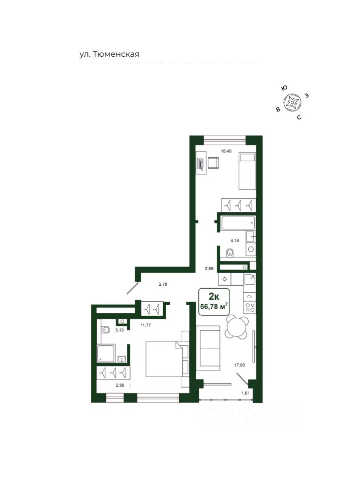 Общая площадь56,78 м2