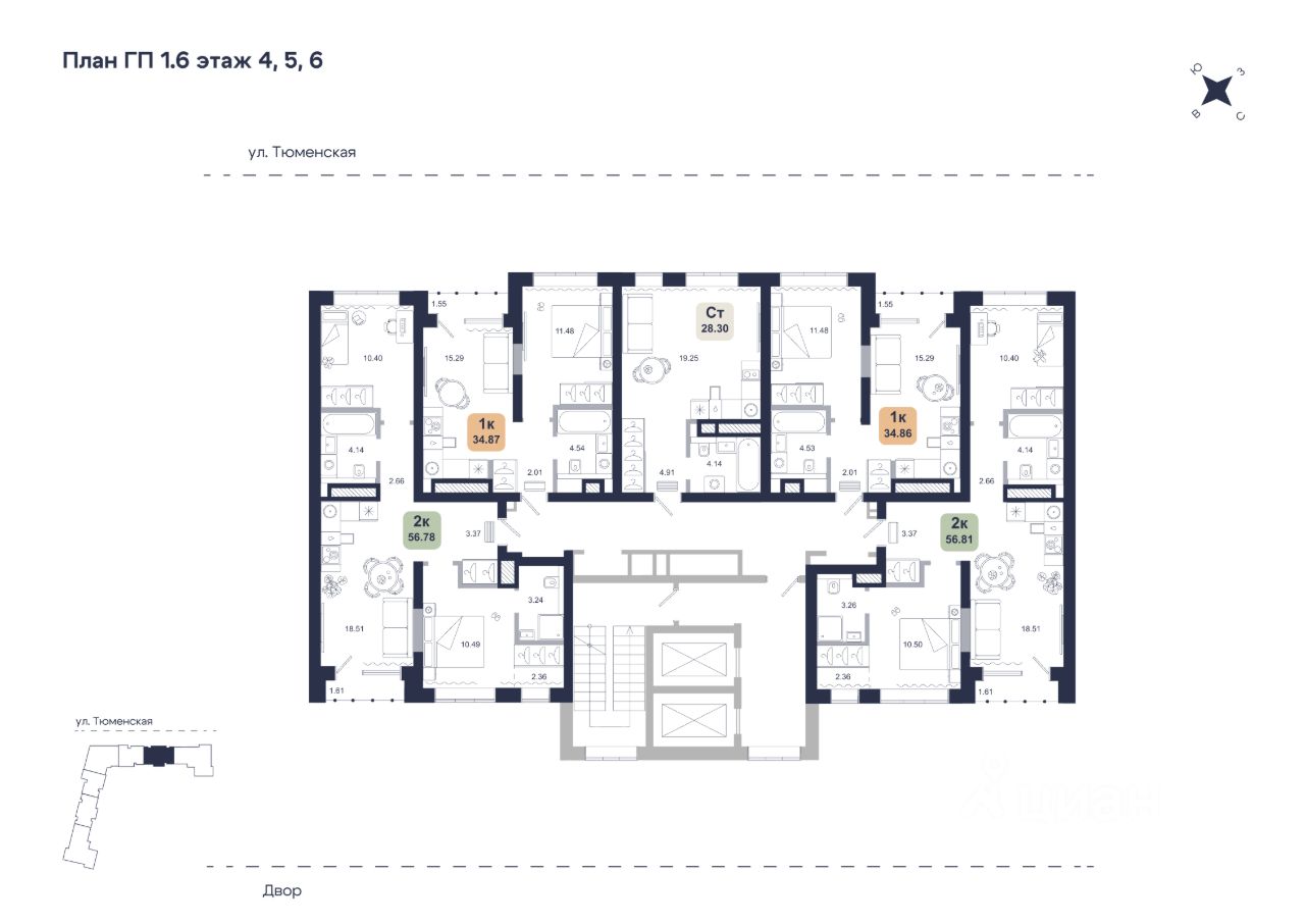 Общая площадь56,81 м2