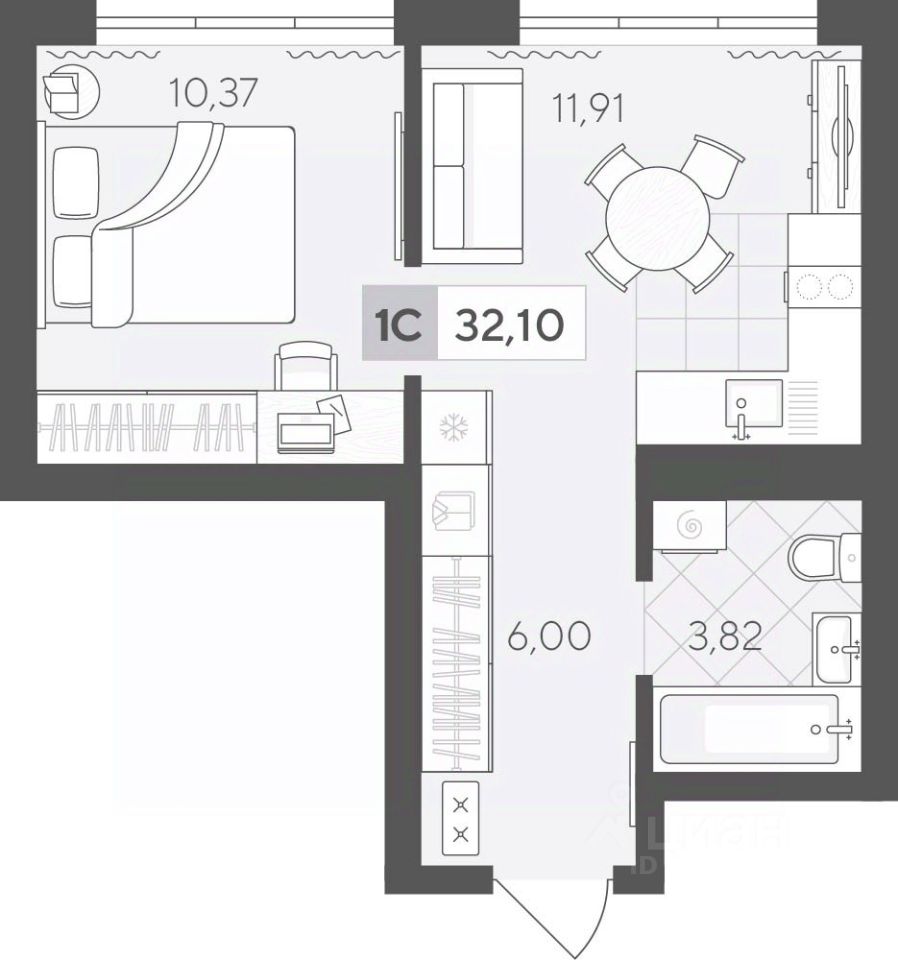 Продаётся 1-комнатная квартира в строящемся доме (ГП 2 (Сергея Корепанова, 34)), срок сдачи: IV-кв. 2027, общей площадью 32.1 кв.м., на 2 этаже. Новый жилой комплекс ''Скандиа. Квартал у Леса'' от Специализированного застройщика ''СКАНДИА У ЛЕСА'' расположен в г. Тюмень на ул. Бориса Прудаева.
