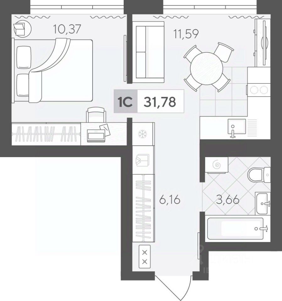 Продаётся 1-комнатная квартира в строящемся доме (ГП 2 (Сергея Корепанова, 34)), срок сдачи: IV-кв. 2027, общей площадью 31.78 кв.м., на 17 этаже. Новый жилой комплекс ''Скандиа. Квартал у Леса'' от Специализированного застройщика ''СКАНДИА У ЛЕСА'' расположен в г. Тюмень на ул. Бориса Прудаева.