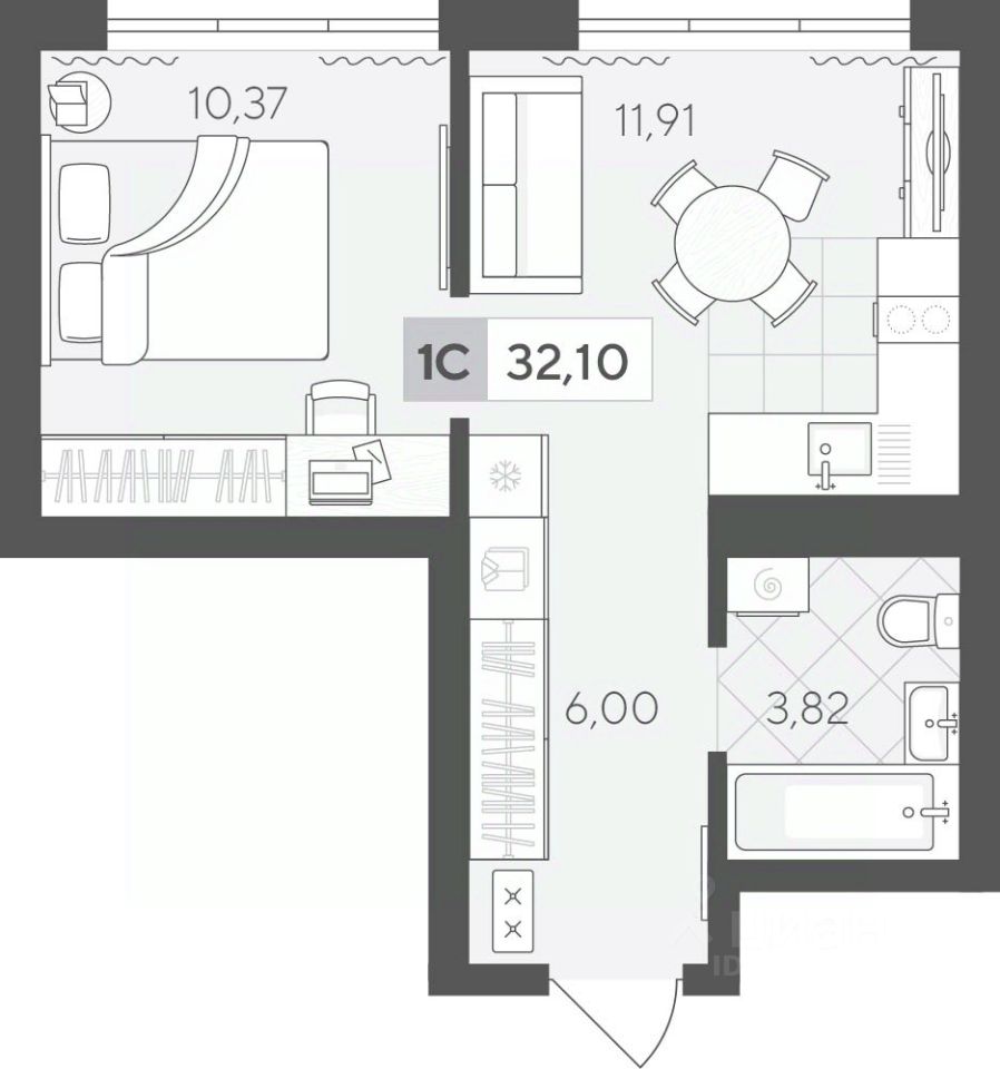 Продаётся 1-комнатная квартира в строящемся доме (ГП 2 (Сергея Корепанова, 34)), срок сдачи: IV-кв. 2027, общей площадью 32.1 кв.м., на 10 этаже. Новый жилой комплекс ''Скандиа. Квартал у Леса'' от Специализированного застройщика ''СКАНДИА У ЛЕСА'' расположен в г. Тюмень на ул. Бориса Прудаева.