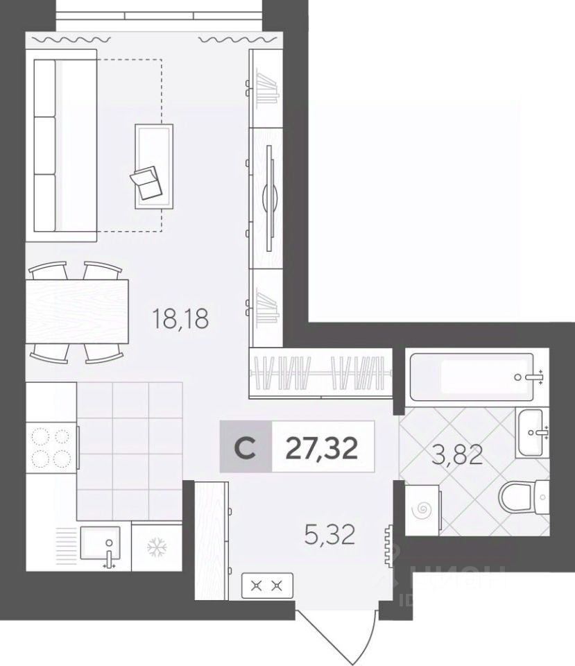 Продаётся студия в строящемся доме (ГП 2 (Сергея Корепанова, 34)), срок сдачи: IV-кв. 2027, общей площадью 27.32 кв.м., на 14 этаже. Новый жилой комплекс ''Скандиа. Квартал у Леса'' от Специализированного застройщика ''СКАНДИА У ЛЕСА'' расположен в г. Тюмень на ул. Бориса Прудаева.