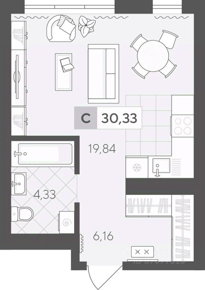 Продаётся студия в строящемся доме (ГП 2 (Сергея Корепанова, 34)), срок сдачи: IV-кв. 2027, общей площадью 30.33 кв.м., на 5 этаже. Новый жилой комплекс ''Скандиа. Квартал у Леса'' от Специализированного застройщика ''СКАНДИА У ЛЕСА'' расположен в г. Тюмень на ул. Бориса Прудаева.