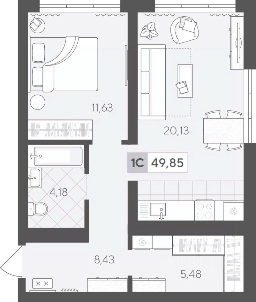 Продаётся 1-комнатная квартира в строящемся доме (ГП 2 (Сергея Корепанова, 34)), срок сдачи: IV-кв. 2027, общей площадью 49.85 кв.м., на 15 этаже. Новый жилой комплекс ''Скандиа. Квартал у Леса'' от Специализированного застройщика ''СКАНДИА У ЛЕСА'' расположен в г. Тюмень на ул. Бориса Прудаева.