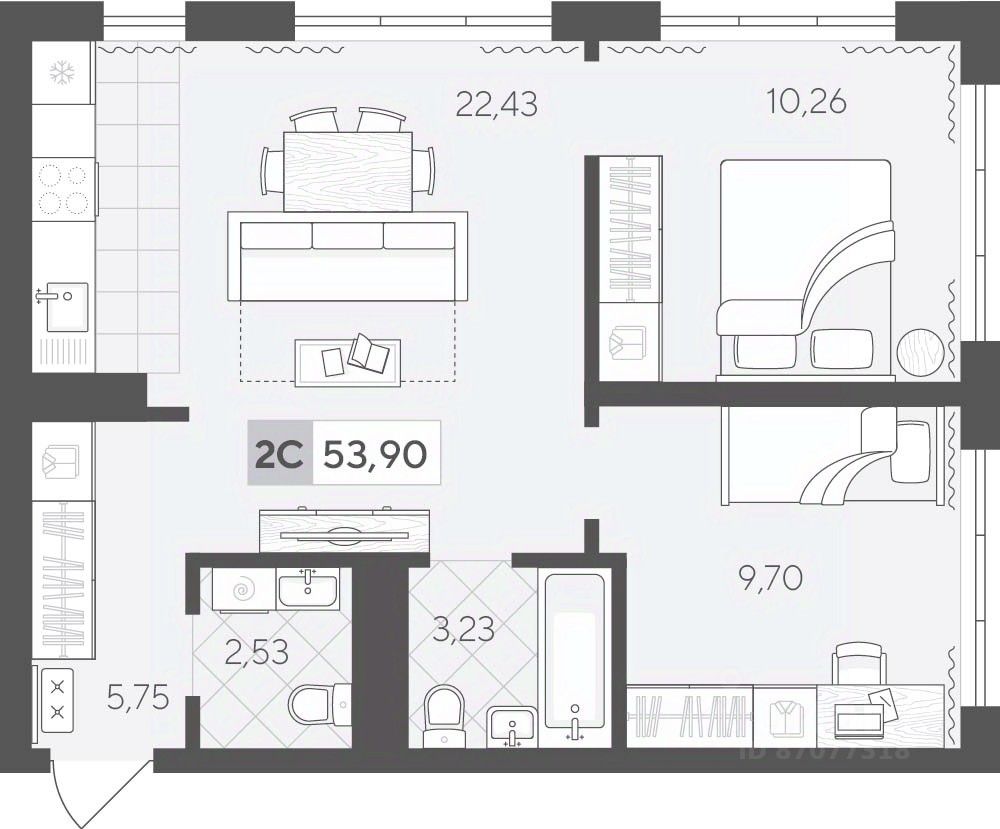 Продаётся 2-комнатная квартира в строящемся доме (ГП 2 (Сергея Корепанова, 34)), срок сдачи: IV-кв. 2027, общей площадью 53.9 кв.м., на 10 этаже. Новый жилой комплекс ''Скандиа. Квартал у Леса'' от Специализированного застройщика ''СКАНДИА У ЛЕСА'' расположен в г. Тюмень на ул. Бориса Прудаева.