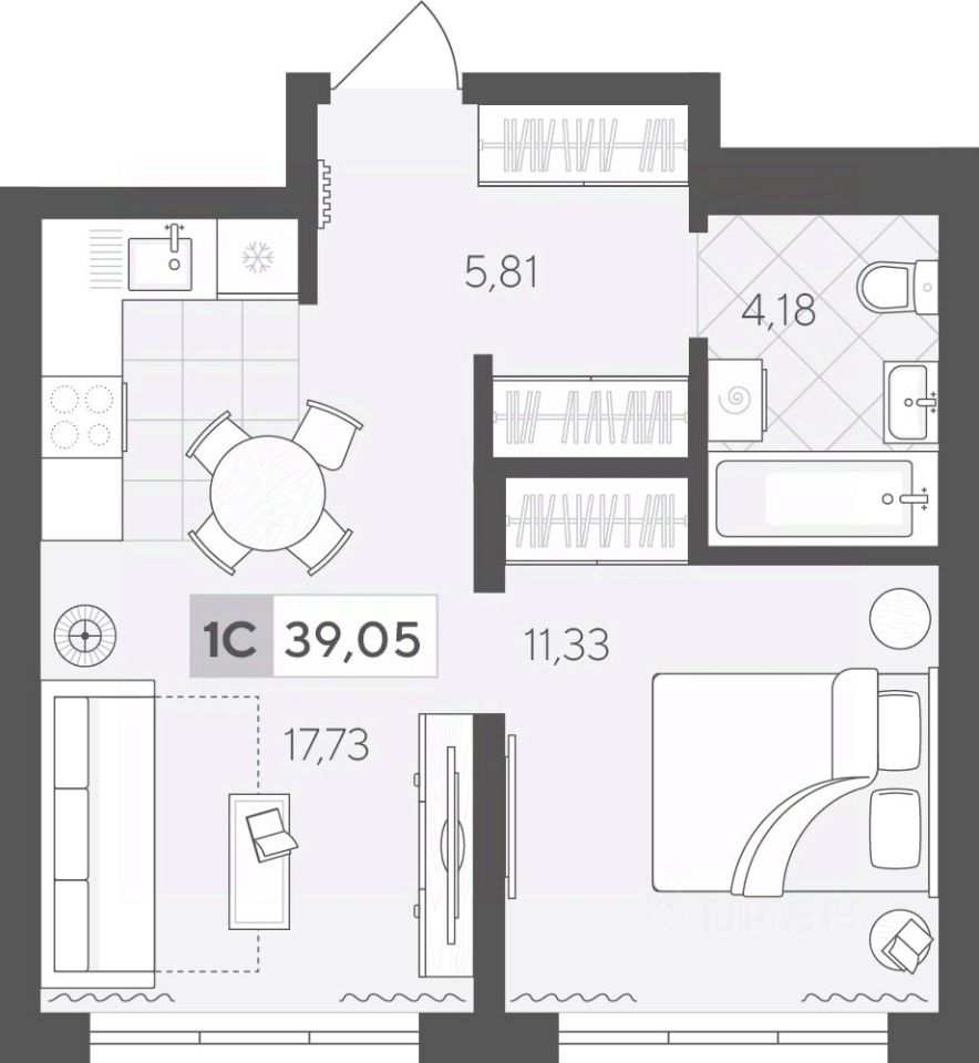 Продаётся 1-комнатная квартира в строящемся доме (ГП 2 (Сергея Корепанова, 34)), срок сдачи: IV-кв. 2027, общей площадью 39.05 кв.м., на 17 этаже. Новый жилой комплекс ''Скандиа. Квартал у Леса'' от Специализированного застройщика ''СКАНДИА У ЛЕСА'' расположен в г. Тюмень на ул. Бориса Прудаева.