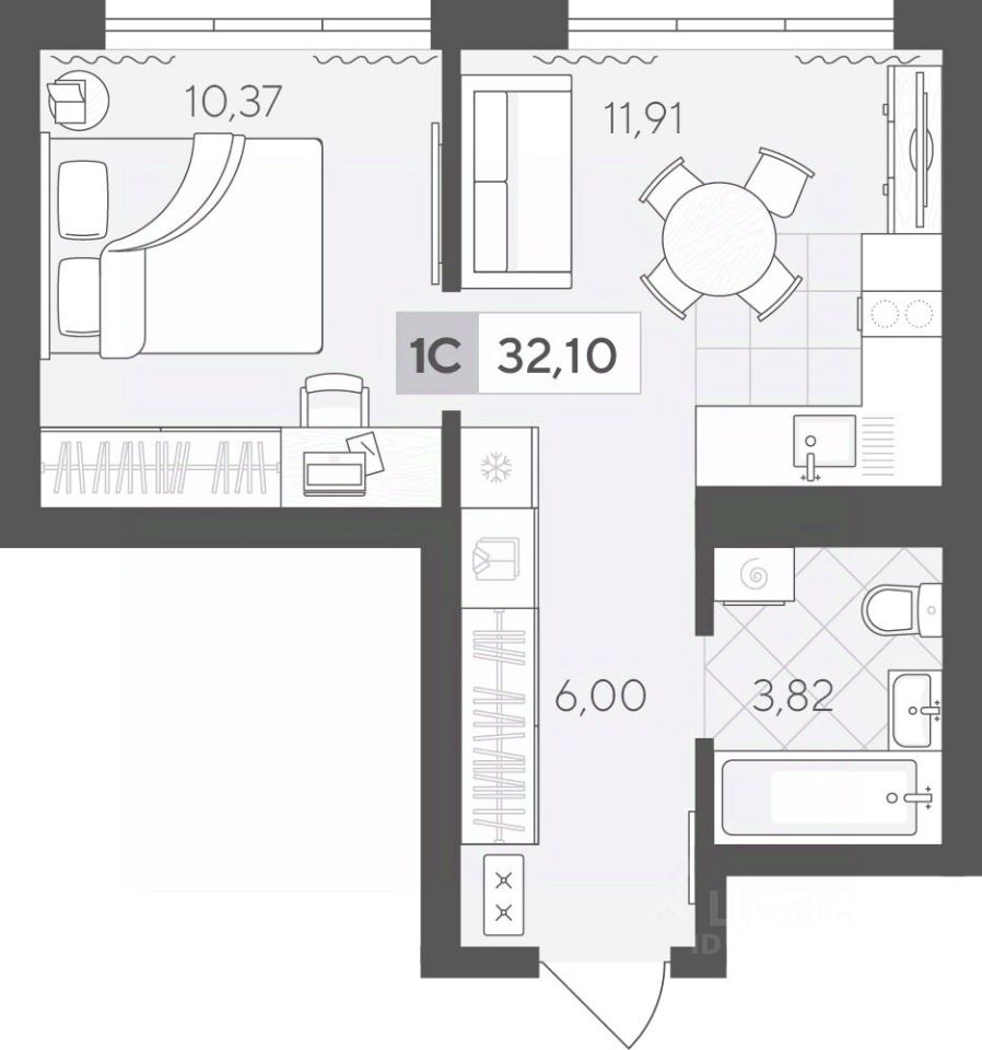 Продаётся 1-комнатная квартира в строящемся доме (ГП 2 (Сергея Корепанова, 34)), срок сдачи: IV-кв. 2027, общей площадью 32.1 кв.м., на 6 этаже. Новый жилой комплекс ''Скандиа. Квартал у Леса'' от Специализированного застройщика ''СКАНДИА У ЛЕСА'' расположен в г. Тюмень на ул. Бориса Прудаева.