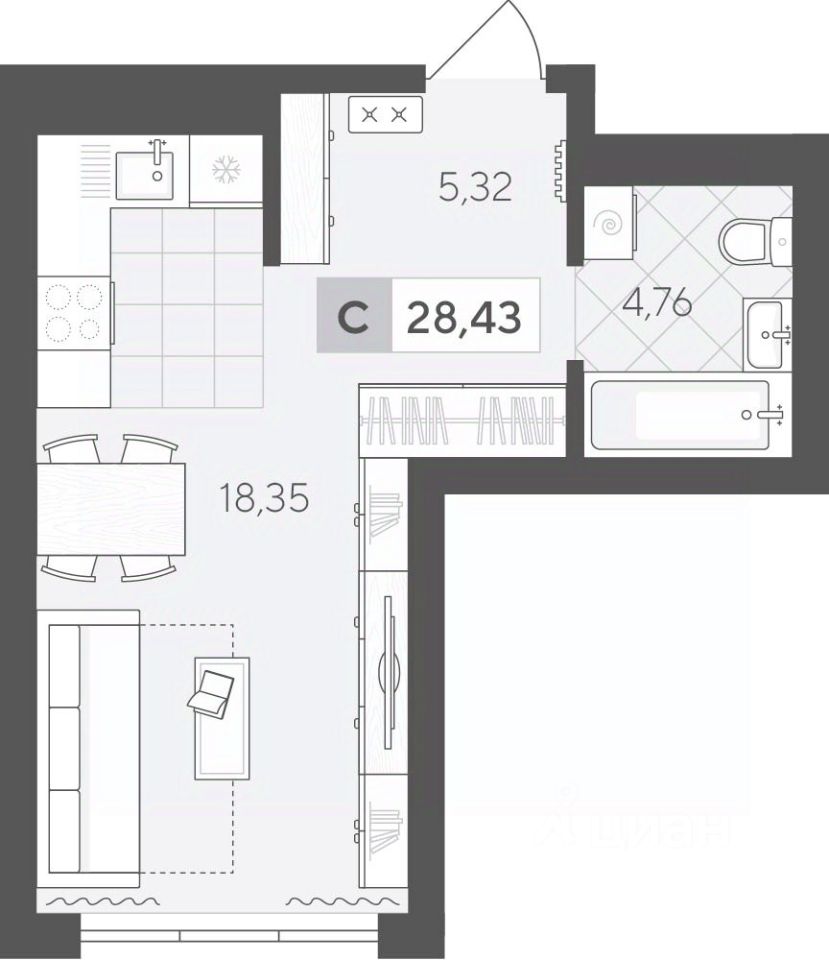 Продаётся студия в строящемся доме (ГП 2 (Сергея Корепанова, 34)), срок сдачи: IV-кв. 2027, общей площадью 28.43 кв.м., на 3 этаже. Новый жилой комплекс ''Скандиа. Квартал у Леса'' от Специализированного застройщика ''СКАНДИА У ЛЕСА'' расположен в г. Тюмень на ул. Бориса Прудаева.