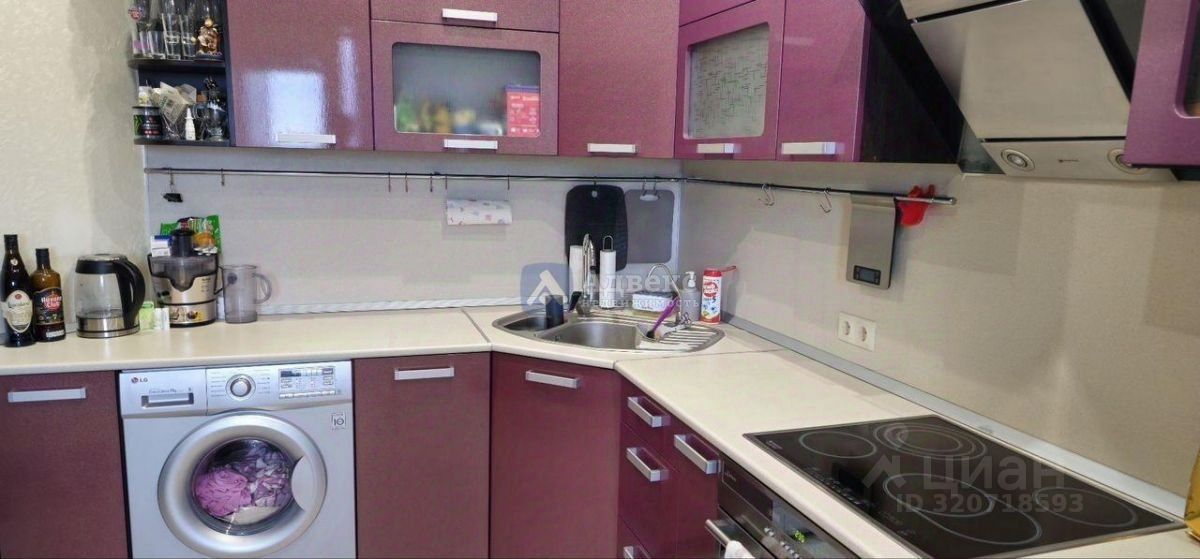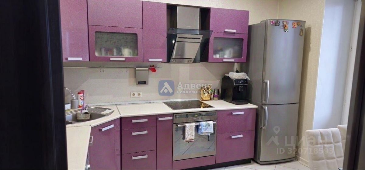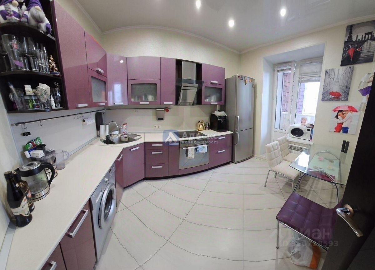 Продается уютная квартира с современным евро-ремонтом на 15 этаже кирпичного дома, построенного в 2010 году. При ремонте все поверхности выравнивались под маяки. Квартира очень тёплая. Просторная кухня оборудована стильной мебелью фиолетового цвета, встроенной техникой и обеденной зоной. В квартире установлен кондиционер и стиральная машина.