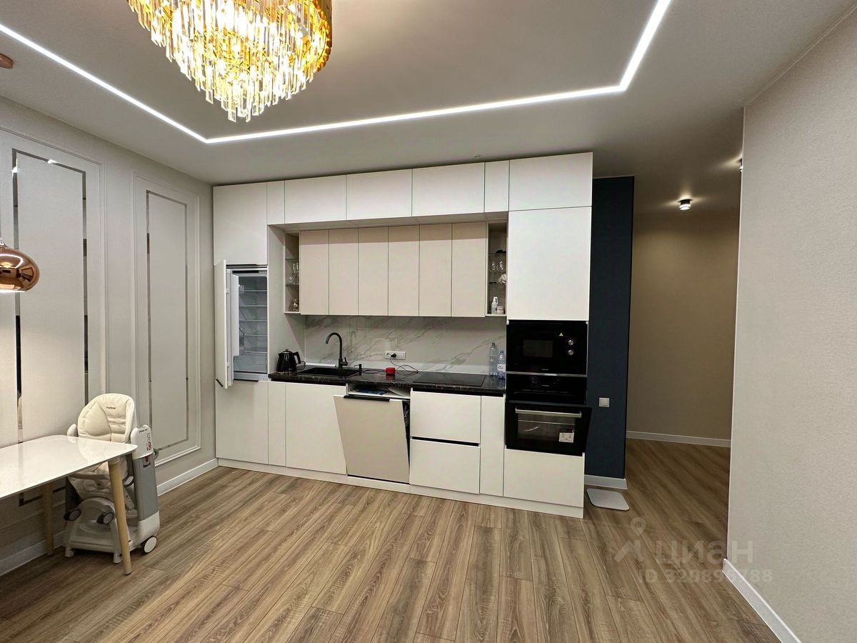 В квартире выполнен современный ремонт из дорогостоящих материалов, установлена современная бытовая техника. Квартира с очень удобной функциональной планировкой: общая площадь 71, 3м², высота потолков 3м, натяжные потолки в каждой комнате, просторный коридор с встроенным гардеробом, две изолированные комнаты на разные стороны, просторная кухня-гостиная 20, 1м², санузел с душевой кабиной и ванной, просторная лоджия с панорамным остеклением и тёплым полом. С хранением вещей большой семьи не возникнет никаких проблем: в каждой комнате шкафы для хранения до самого потолка. Входная дверь от застройщика заменена на более качественную и дорогую. Окна с москитными сетками, приточные клапаны у каждого окна, установлены счетчики горячей и холодной воды с телеметрией. Шикарный ремонт по индивидуальному дизайн-проекту. Современный дизайнерский интерьер, который не теряет своей актуальности, выполнен в спокойной палитре. Качественно продумана электрика, люстры и точечные светильники, за счет чего квартира очень светлая.