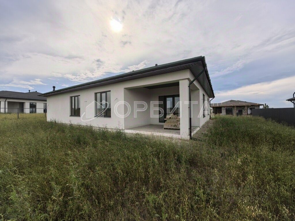 Сам дом на монолитной плите 300 мм стены газоблок 300 мм+ утеплитель 100 мм + штукатурка. Мягкая кровля . Забор по периметру . Скважина, септик .