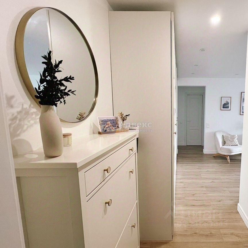 Оборудование и мебель. * Кухня: Максимально продуманная, с доводчиками Blum. * Комплектация: Мойка, смеситель и дозатор для мыла фирмы Blanco. * Столешница: Из акрилового камня. * Хранение: остаются встроенные шкафы в ванной и на балконе. * Техника: Не остаётся.