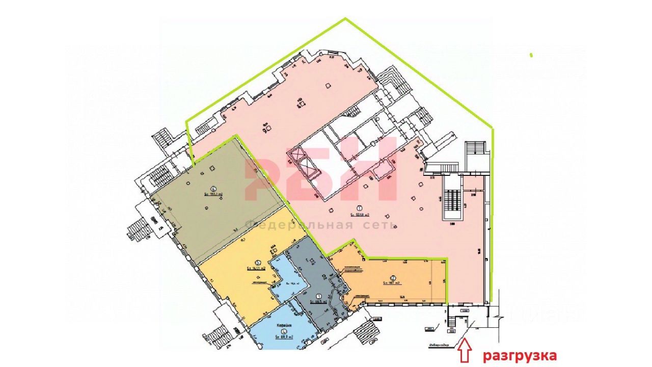 4 входа, зона разгрузки,