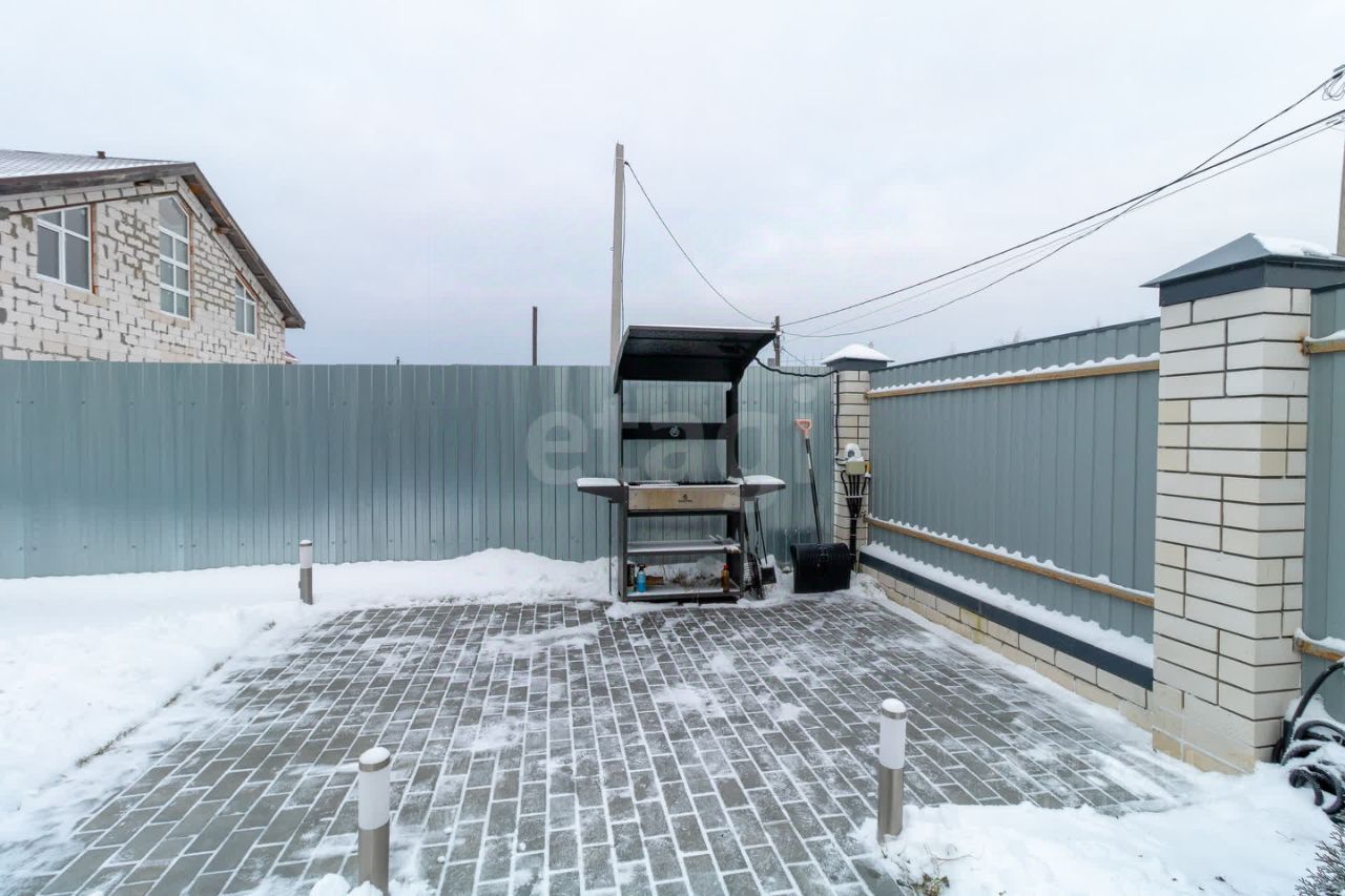 Мебель выполнена на заказ, что придаёт интерьеру уникальность и стиль. На территории дома уложена брусчатка, предусмотрено парковочное место для четырех автомобилей, а также ухоженный рулонный газон с высаженными туями и гортензиями, создающими атмосферу уюта и комфорта.