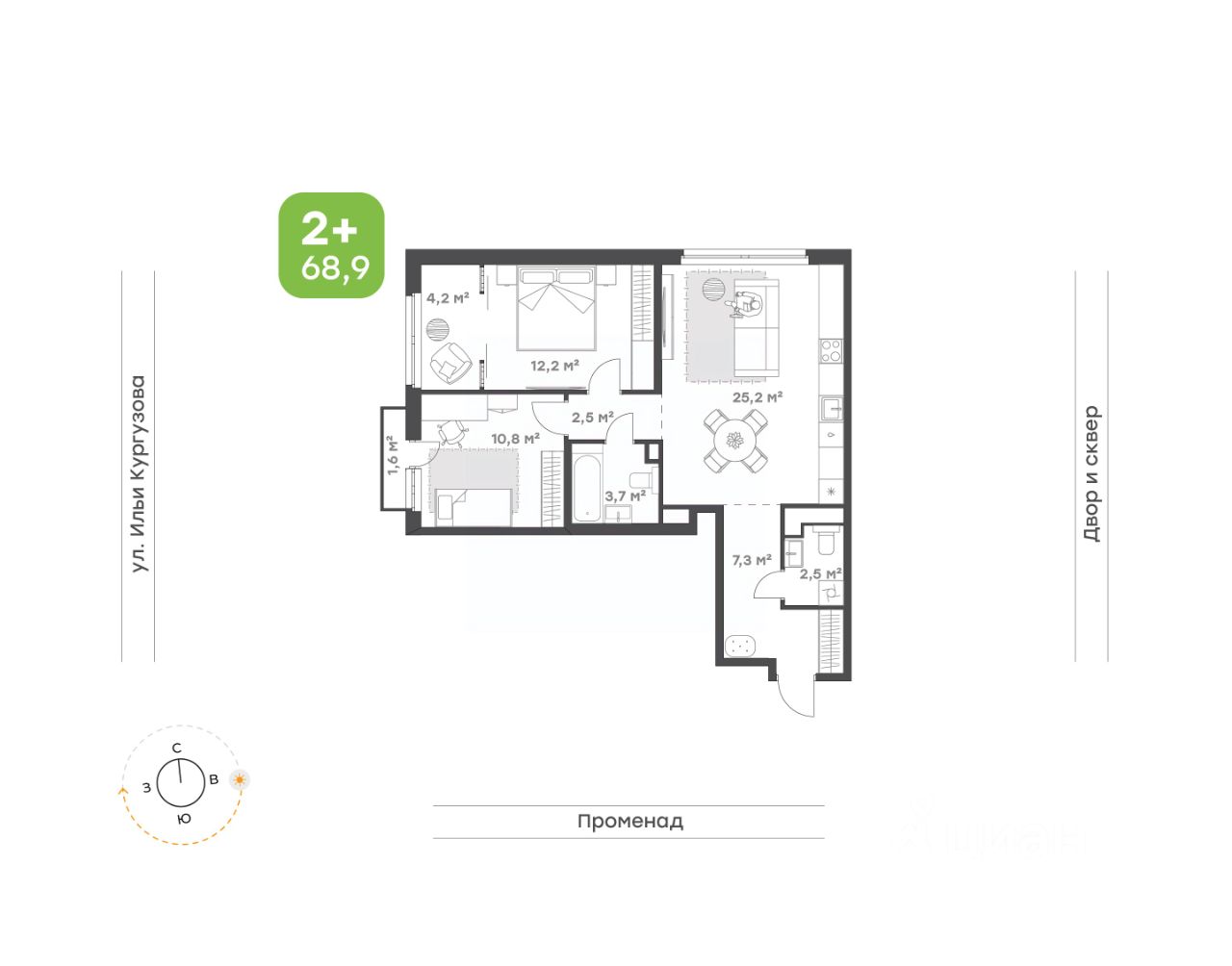 Самая популярная по спросу квартира это квартира с окнами на 2 стороны света! Здесь идеально все!
