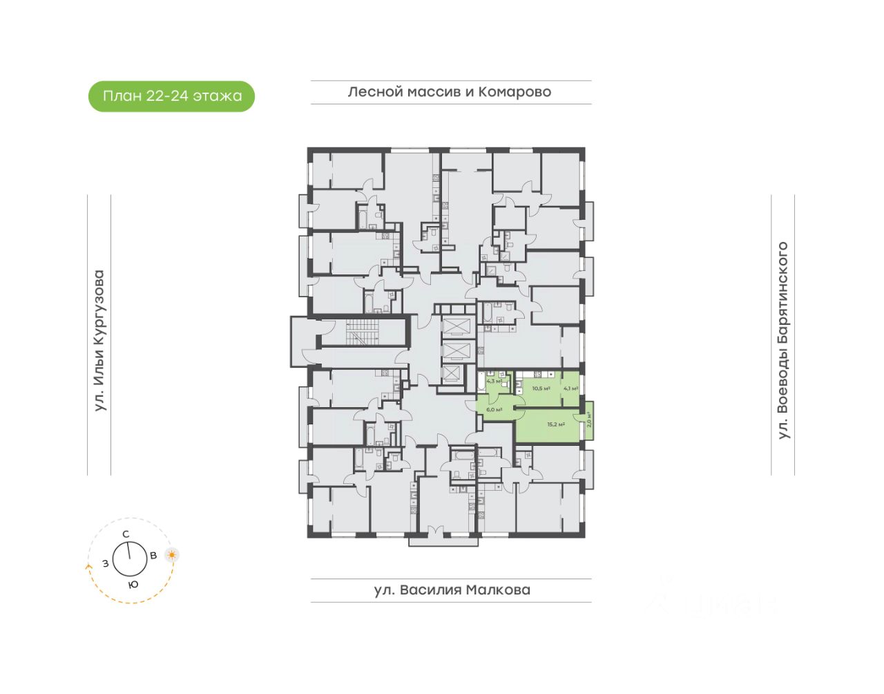 Однокомнатная квартира с видом на современный микрорайон Комарово-парк